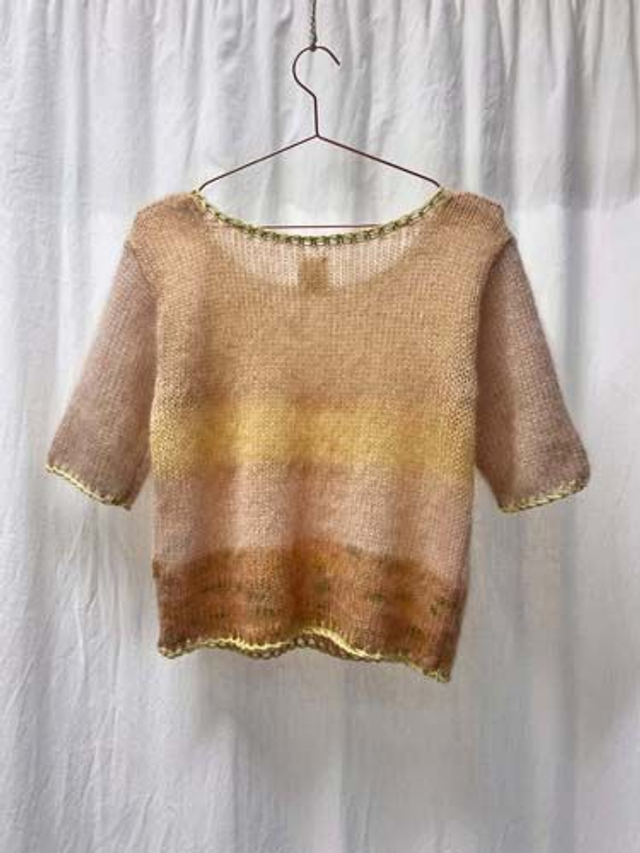 77% Super Kidmohair 23% Seide + 72% Kidmohair RMS/28% Seide -- Kanten in 55% Bio Woll /45% Bio Baumwolle GOTS