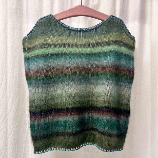 72% Kidmohair RMS/28% Seide und 77% Super Kidmohair 23% Seide -- Kanten in 55% Bio Woll /45% Bio Baumwolle GOTS